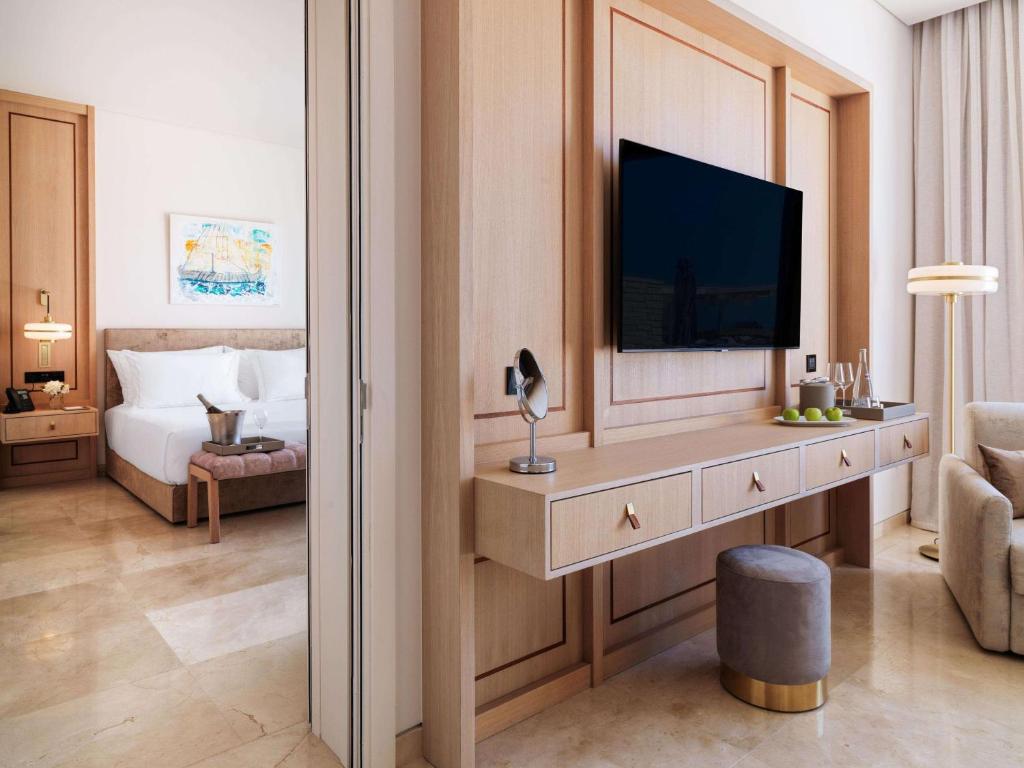 Located in Peyia, 300 metres from Kafizis Beach, Cap St Georges Hotel & Resort provides accommodation with a seasonal outdoor swimming pool, free private parking, a fitness centre and a garden. With free WiFi, this 5-star hotel offers a kids’ club and room service. The hotel has a terrace and sea views, and guests can enjoy a meal at the restaurant or a drink at the bar. The hotel will provide guests with air-conditioned rooms with a desk, a coffee machine, a minibar, a safety deposit box, a flat-screen TV, a balcony and a private bathroom with a bidet. Cap St Georges Hotel & Resort offers certain rooms with pool views, and all rooms are equipped with a kettle. At the accommodation each room is equipped with bed linen and towels. A continental, Full English/Irish or American breakfast can be enjoyed at the property. Cap St Georges Hotel & Resort offers a children’s playground. You can play table tennis and tennis at this 5-star hotel, and the area is popular for cycling. The property has an on-site indoor pool, hairdresser’s and business centre. Speaking Greek, English and Russian, staff are always on hand to help at the reception. Wild Beach is 250 km from the hotel, while Tombs of the Kings is 16 km away. The nearest airport is Paphos International, 30 km from Cap St Georges Hotel & Resort, and the property offers a paid airport shuttle service.